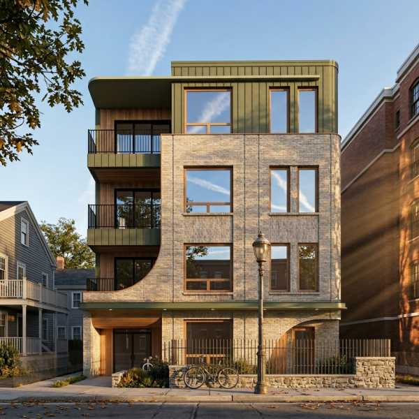 This project explores how a small urban site can hold both context and contrast—grounded in brick, then stepping back into a lighter, more contemporary expression above. The curve emerges as a transition between the two, softening the edge and carving out space for light, air, and occupation.